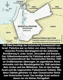 Ein Staat Palästina? Europa bezahlt mit seiner 2-Staaten-Lösung für seine Blindheit mit jüdischem Leben den Preis dafür, vom palästinensischen Terror in Ruhe gelassen zu werden. Verachtung ist das Einzige, was für Politiker übrig bleibt, die so handeln: Paten des Terrors gegen Israel. Viel tiefer kann man nicht sinken. Schon vor über 3.500 Jahren unsrer heutigen, modernen Zeitrechnung hat GOTT selbst dokumentiert in der christlichen Bibel und der hebräischen Thora Israel und den Juden das Land „ISRAEL“ zugeteilt und zwar mit allen Gebieten wie Judäa, Samaria, Westjordanland, die Hauptstadt Jerusalem, Teile vom heutigen Jordanien und den ganzen Libanon und Richtung Ägypten bis zu Nil. Ein Gebiet das wesentlich größer war, als das heutige Staatsgebiet von Israel. Das können Sie hier nachlesen: Die Grenzen von Israel mit Jerusalem als Hauptstadt und der Status der Juden als Volk aus GOTTES Sicht! Wer Israel dieses Land streitig macht führt nach der Bibel einen Krieg mit Gott. Und alle die dies versuchen werden daran scheitern.